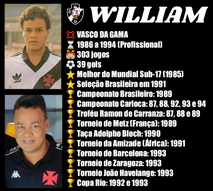 Hoje é aniversário do ídolo William (55 anos), cria de São Januário! Baixinho da canhota habilidosa e que empilhou conquistas nas décadas de 80 e 90 pelo Vasco da Gama! 🎂💢