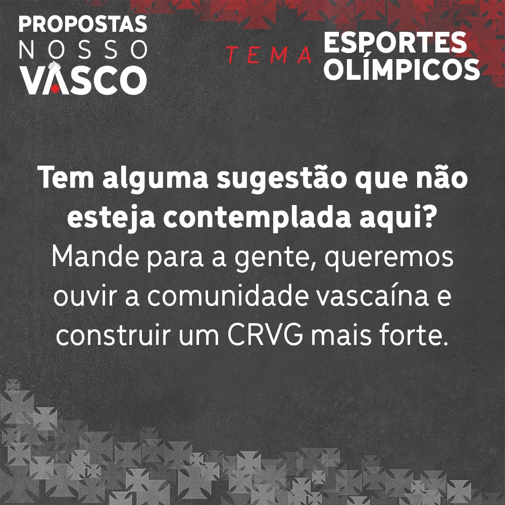 Caso tenham alguma sugestão que não esteja contemplada aqui, mandem para a gente! Queremos ouvir a comunidade vascaína e construir um CRVG mais forte.