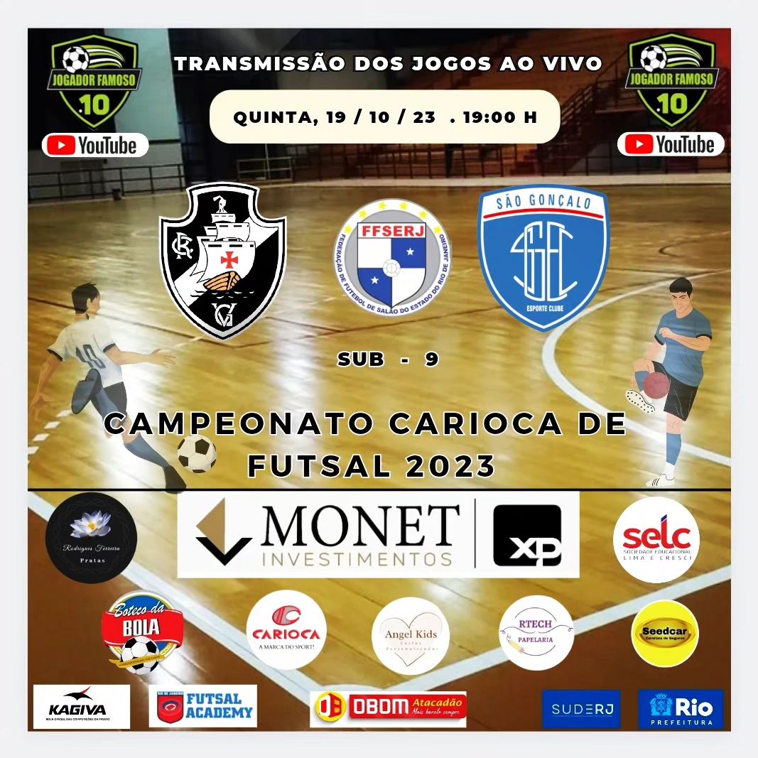 Futsal Base: Vasco enfrenta o Team Sports nos Cariocas Sub-15 e Sub-17 e o São Gonçalo no Sub-09 nesta 5ª com Youtube