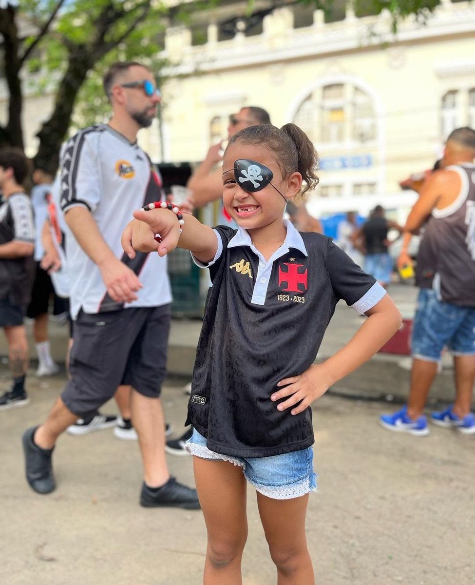 Pequena vascaína usa tapa-olho em homenagem a Vegetti em São Januário