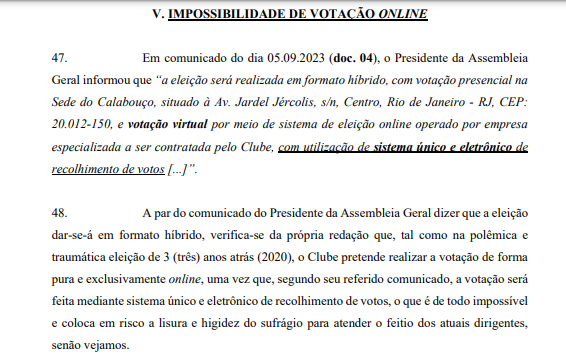 Leonardo Rodrigues, Pedro Strozemberg e João Carlos Nóbra estão requerendo em juízo que o CRVG realize eleições de forma EXCLUSIVAMENTE presencial.