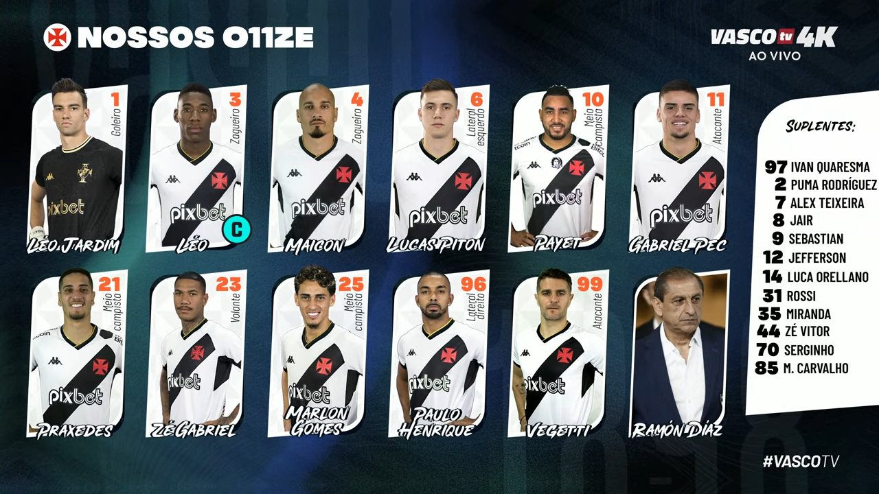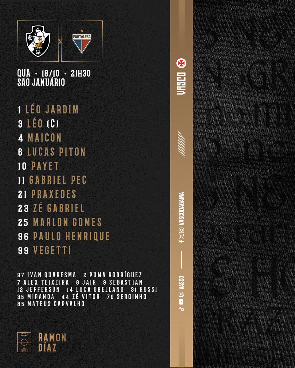 📋💢 Confira agora a escalação tradicional do 𝐕𝐀𝐒𝐂𝐎 𝐃𝐀 𝐆𝐀𝐌𝐀 em ordem numérica!