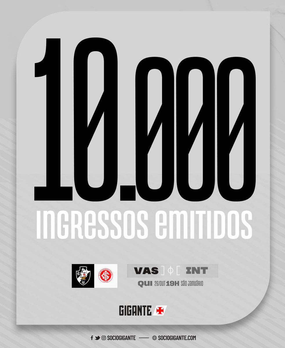 Já foram emitidos 10 mil ingressos para Vasco x Internacional