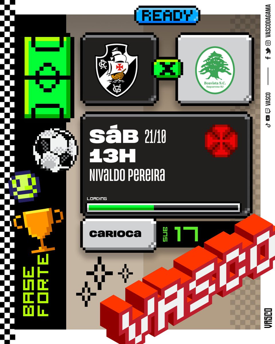 Já classificados, as categorias Sub-17 e Sub-15 do Vasco encaram o Boavista pela última rodada da Taça Guanabara, às 13h e 15h, respectivamente, no Estádio Nivaldo Pereira.