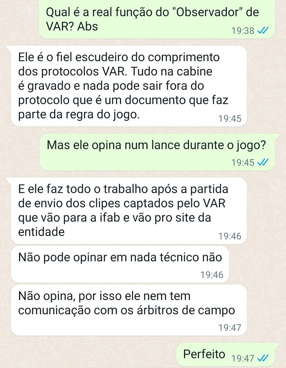Tem algumas pessoas confundindo a função do Observador de VAR. Como na escala de arbitragem para o clássico de amanhã apareceu o 'polêmico' Pericles Bassols nessa função, vi muitos torcedores assustados e com razão. Fui tirar dúvida com um árbitro de VAR. Confira: