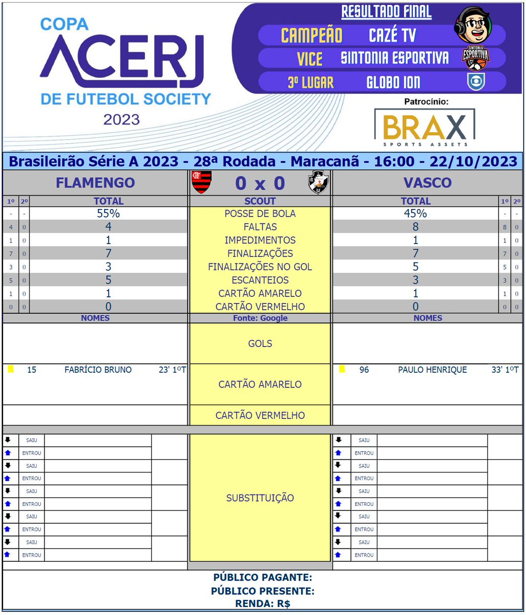 Scout do 1º Tempo de Flamengo e Vasco pela 28ª Rodada do Campeonato Brasileiro 2023 no Maracanã #Acerjinforma #Brasileirao #FLAxVAS #Flamengo #Vasco @Brasileirao @Flamengo @VascodaGama