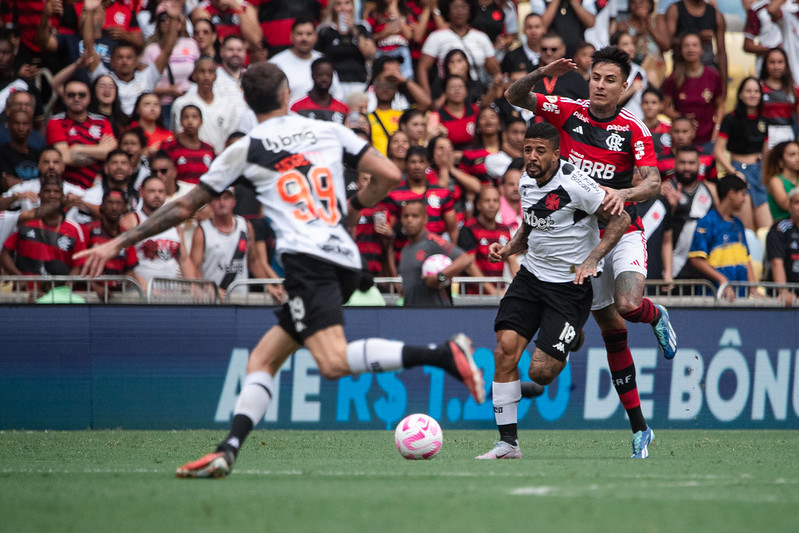 Nos minutos finais, os flamenguistas pressionaram e tiveram a melhor chance do primeiro tempo. Fabrício Bruno aproveitou cobrança de escanteio e cabeceou no travessão. No rebote, o zagueiro chutou para grande defesa de Léo Jardim. Antes do intervalo, o Vasco ainda assustou com Gabriel Pec. Assim, o clássico permaneceu na etapa inicial.