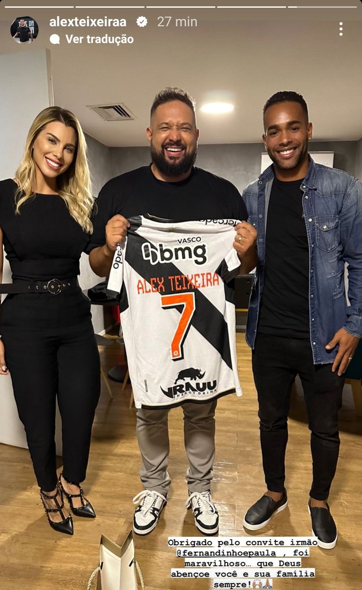 Alex Teixeira presenteia o cantor gospel Fernandinho com camisa do Vasco
