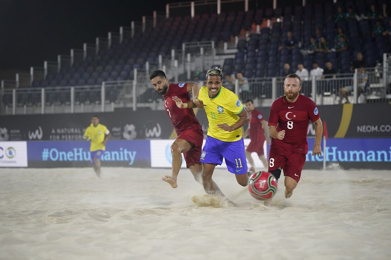 Beach Soccer: Com 2 gols de Mauricinho, Brasil goleia a Turquia por 11 a 2 na estreia dos Neom Beach Games