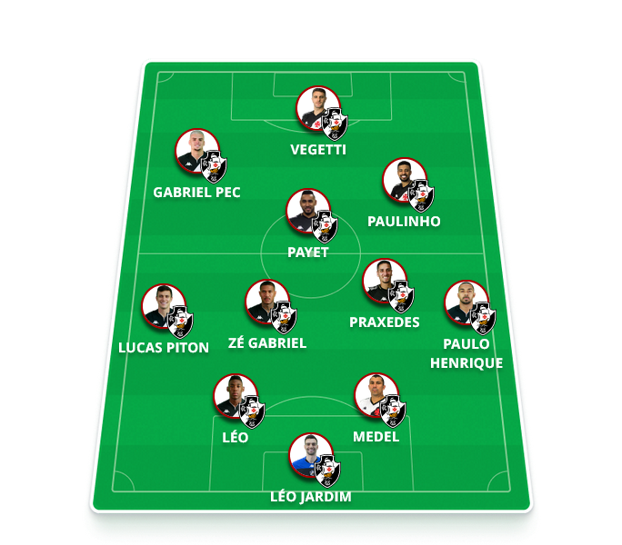O Vasco deve repetir o time que iniciou o jogo contra o Flamengo, com Payet e Paulinho municiando o ataque formado por Pablo Vegetti e Gabriel Pec. O técnico Ramón Díaz ainda não deverá contar com Rossi e Marlon Gomes, lesionados.