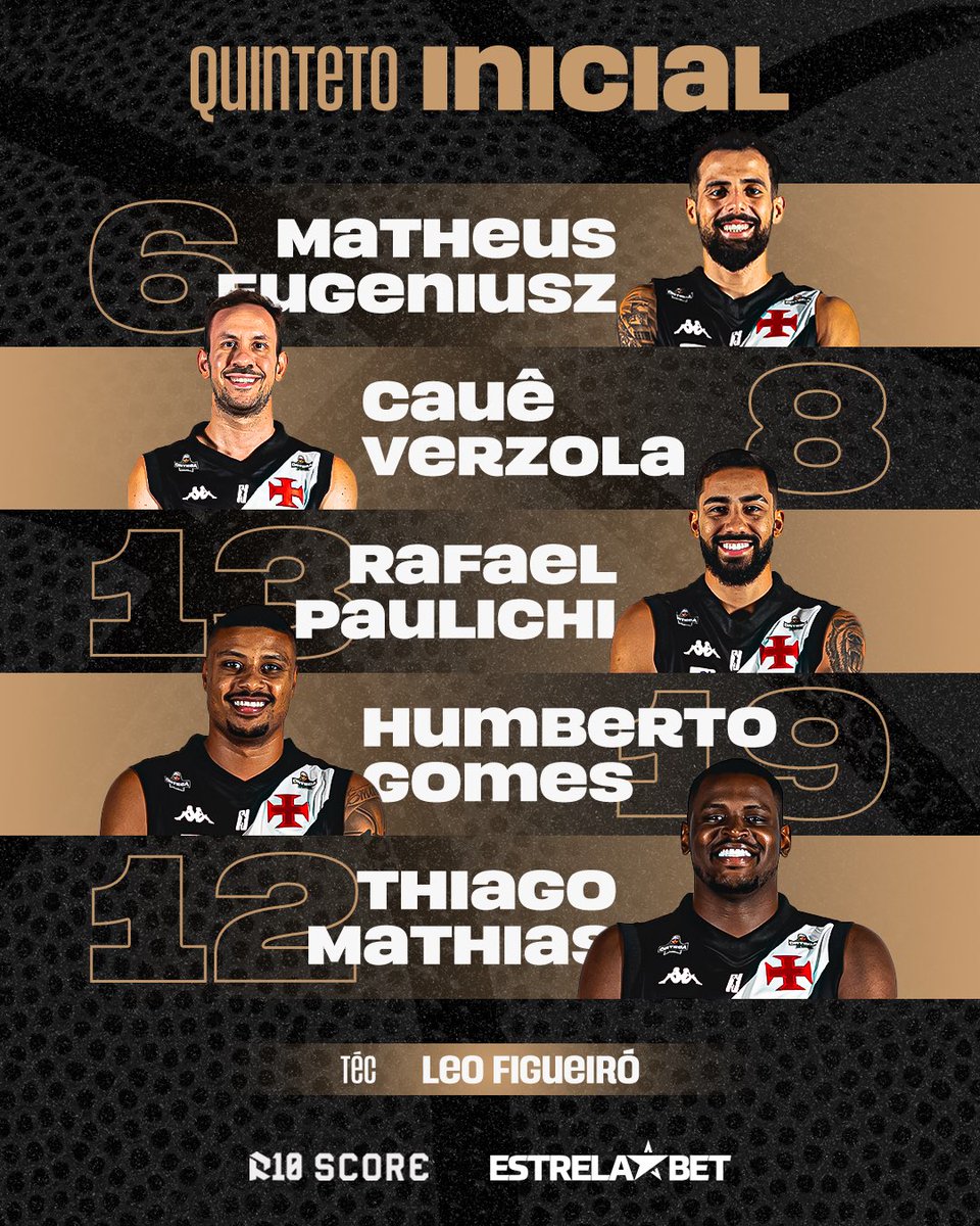 Basquete: Confira o quinteto inicial do Vasco para o jogo contra o Pato