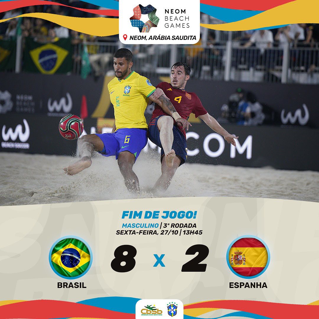 Beach Soccer: Com gols de vascaínos, Brasil vence Espanha e está na final dos Neom Beach Games no masculino e no feminino