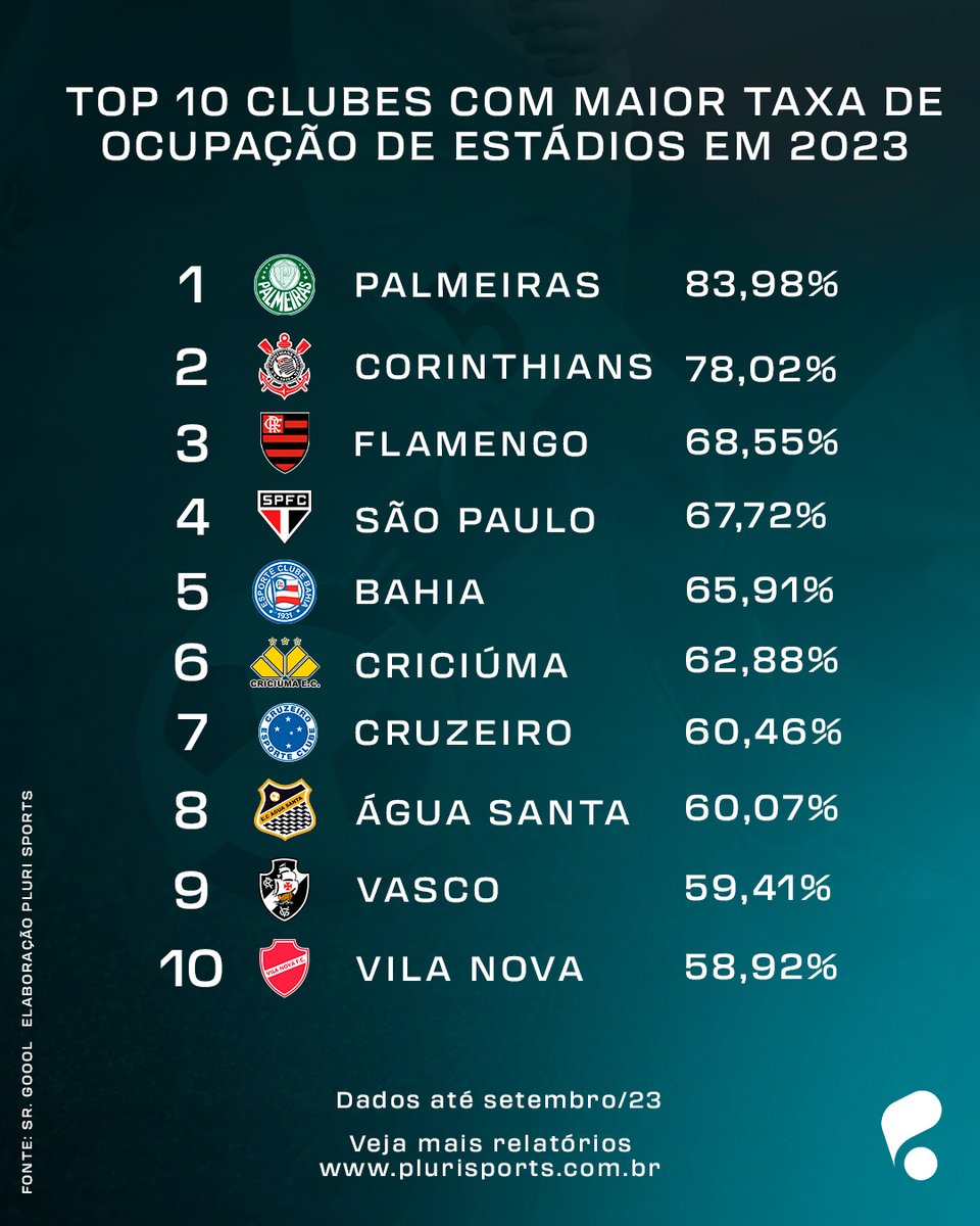 Vasco é o 9º time do Brasil em ocupação de estádio em 2023