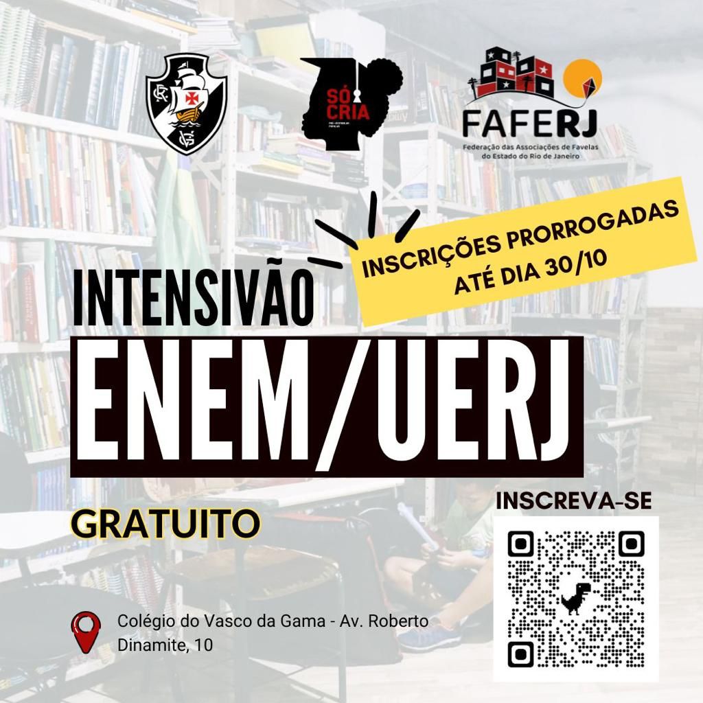 Alerta! 🚨 Aquela oportunidade que faltava pra você ir com tudo pra prova do vestibular! Vasco, a rede Só Cria de Educação Popular e a Associação de Moradores da Barreira estão juntos no projeto de aulas gratuitas no INTENSIVÃO ENEM/UERJ.
