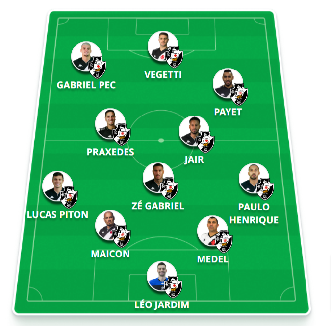 Provável time: Léo Jardim; Paulo Henrique, Medel, Maicon (Léo) e Lucas Piton; Zé Gabriel, Jair (Alex Teixeira), Praxedes e Payet; Gabriel Pec e Vegetti.