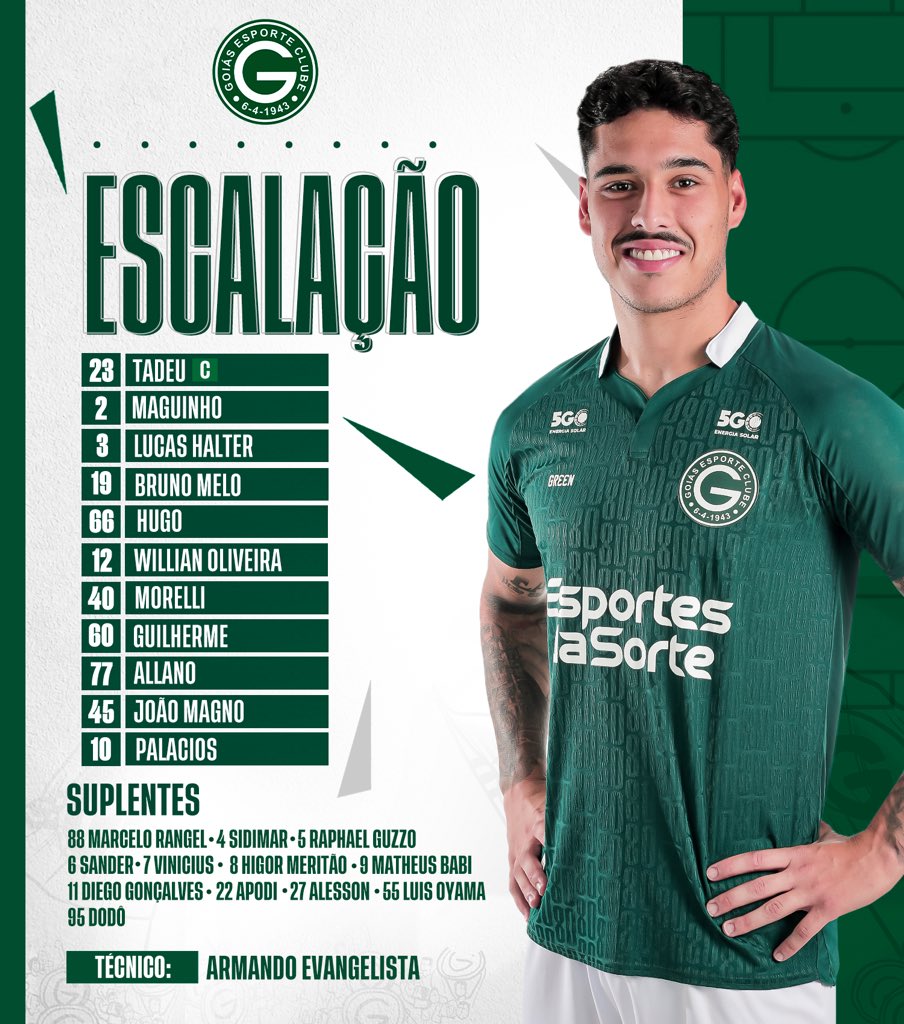 Confira a escalação do Goiás para o jogo contra o Vasco