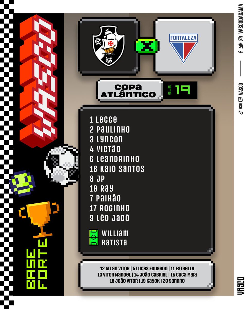 Sub-20: Confira a escalação do Vasco para o jogo contra o Fortaleza