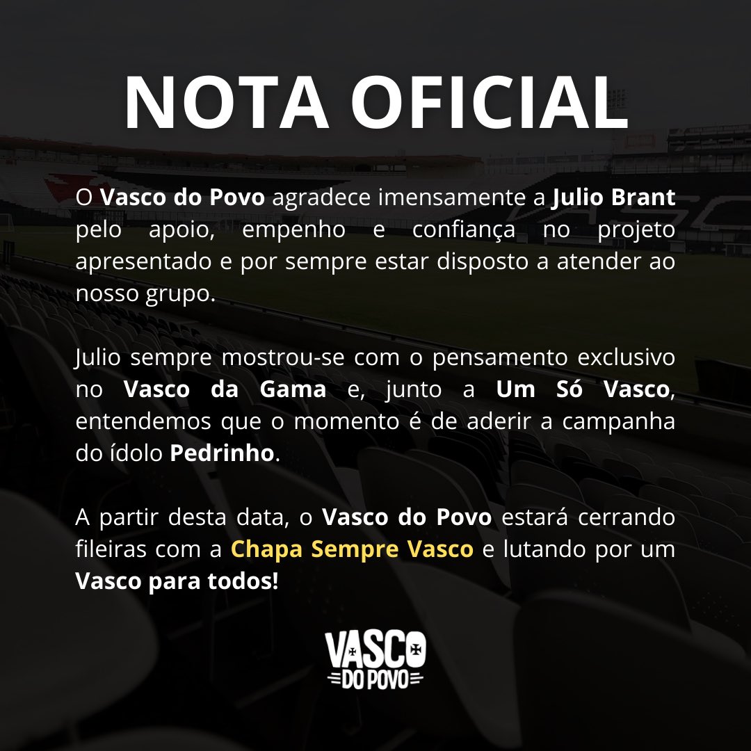Agradecimento a @jcbrant/@umsovasco e apoio a Chapa @semprevascoofic.