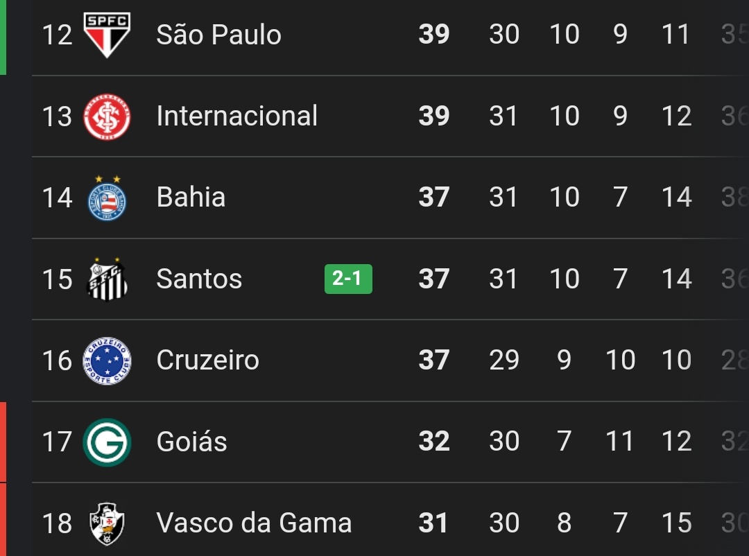 Santos vence o Urubu e abre 6 pontos em relação ao Vasco