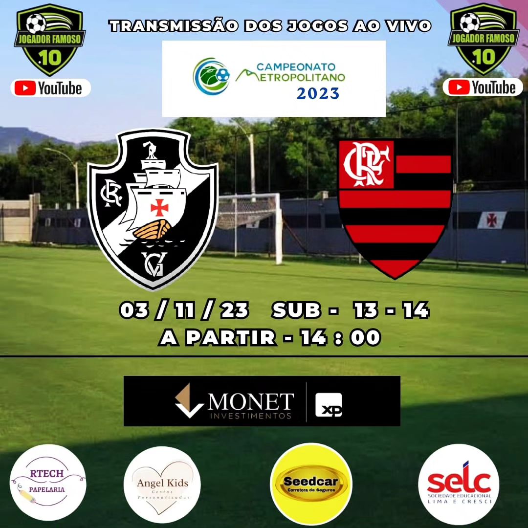 Pela semi da Taça Rio do Metropolitano, Vasco enfrenta o Urubu no Sub-13 e no Sub-14 nesta 6ª a partir das 14h com Youtube