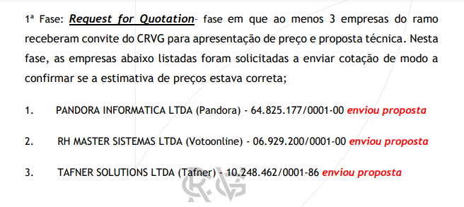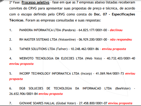 A seleção ocorreu em 3 etapas, onde 7 empresas foram convidadas.
