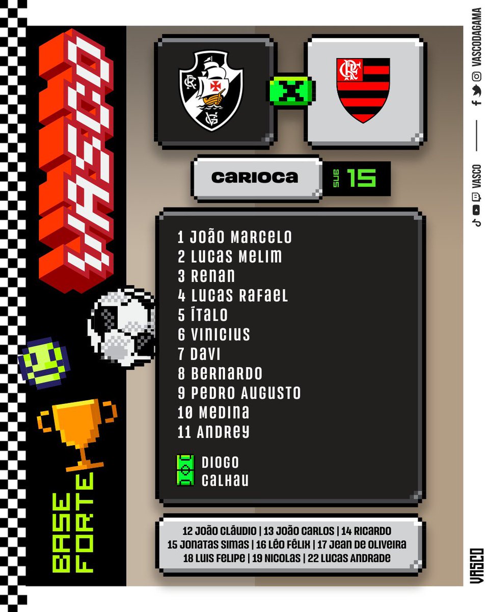 Sub-15: Confira a escalação do Vasco para o jogo contra o Urubu