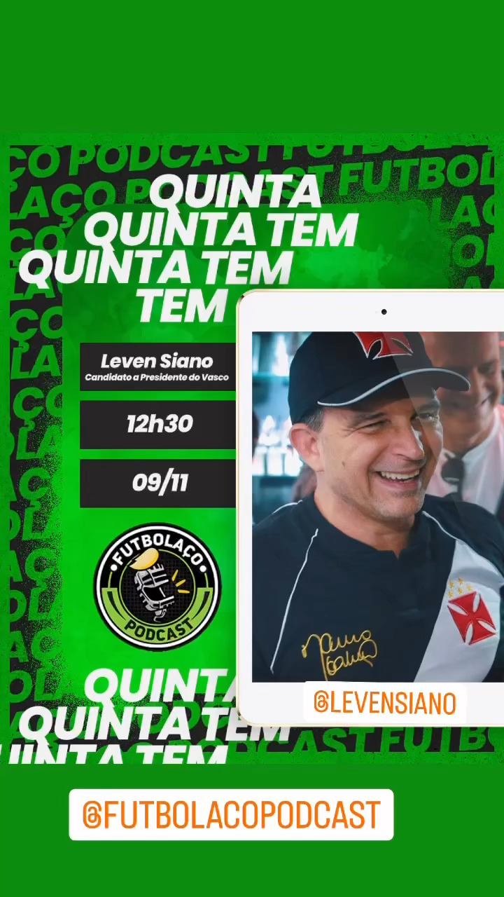 Leven Siano participará de live do canal Futbolaço nesta 5ª-feira às 12h30
