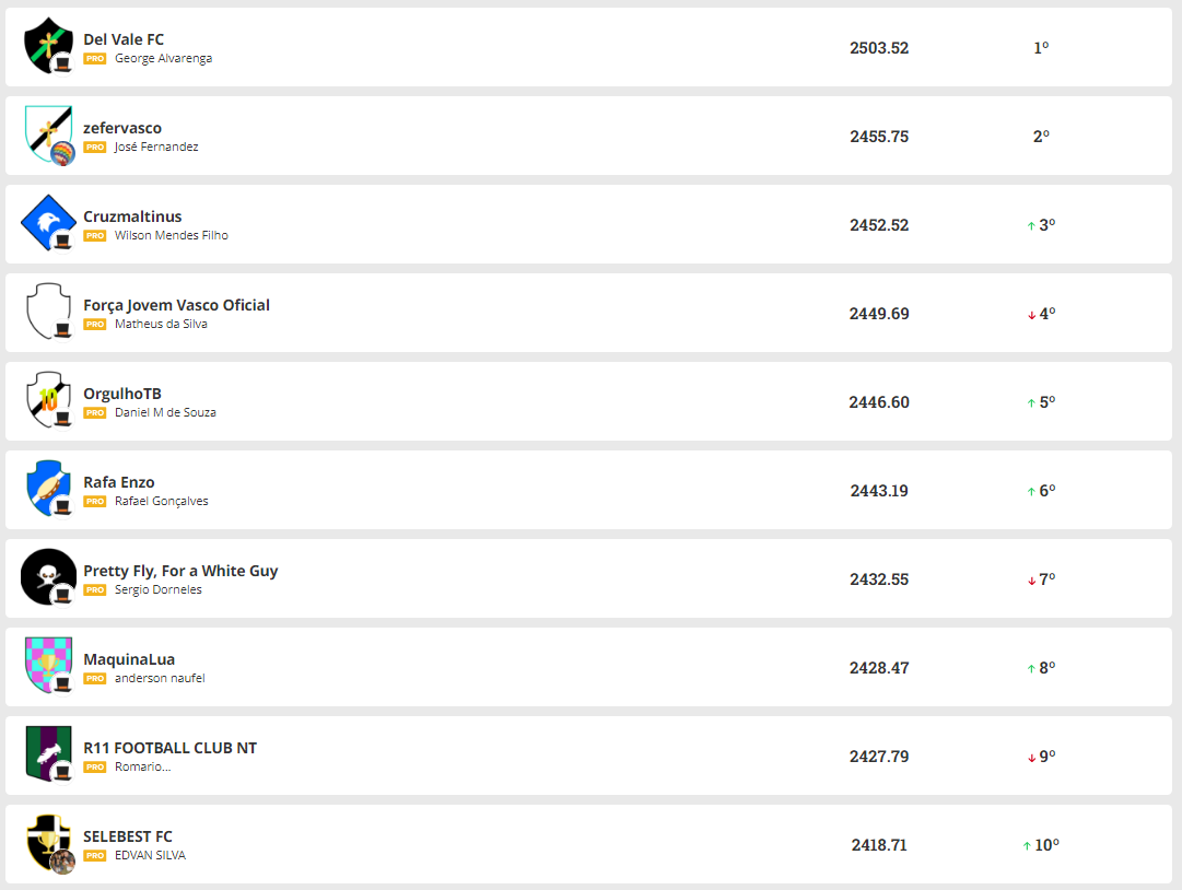 21/10/23 - Cartola: Confira a classificação da Liga NETVASCO após a 27ª rodada