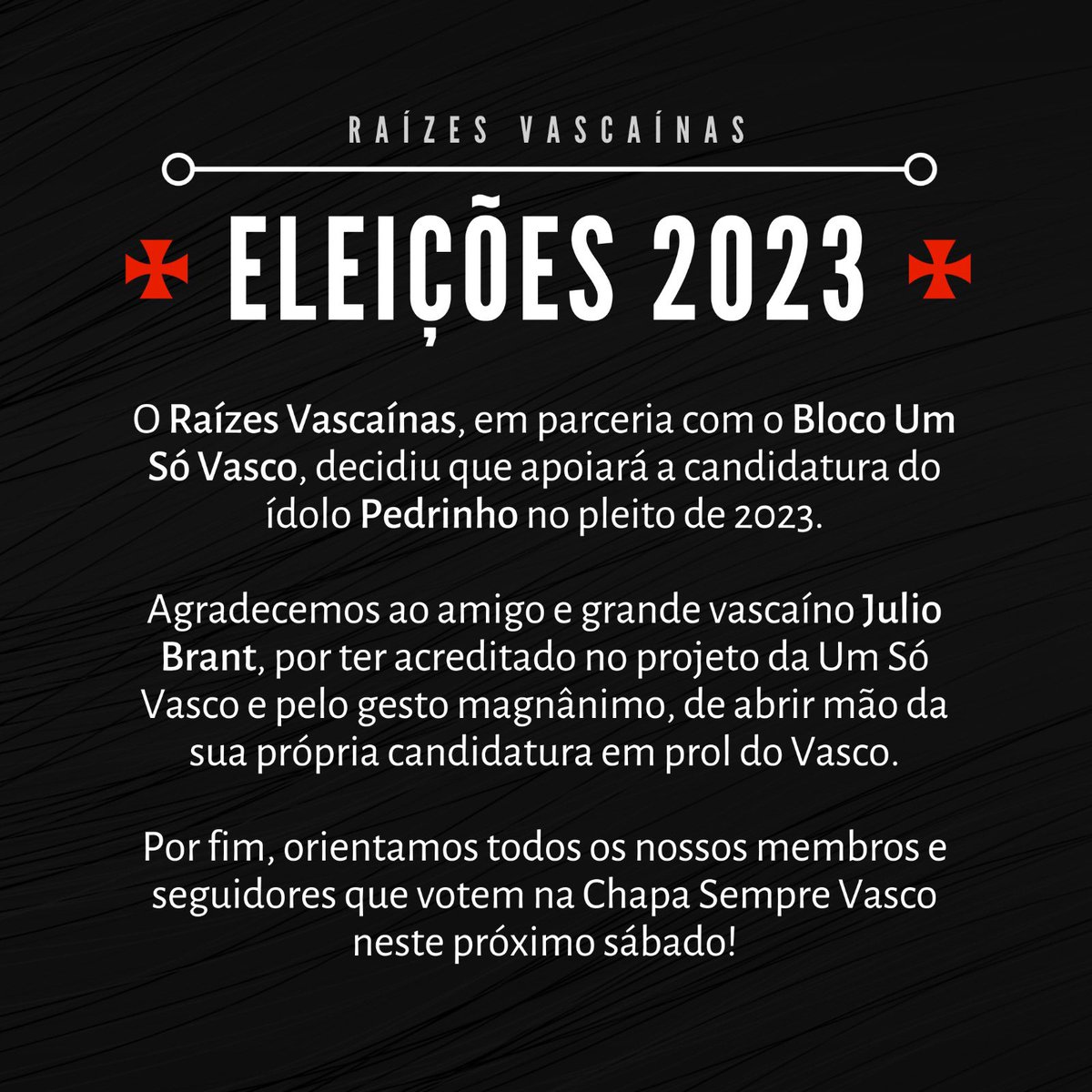 Nota oficial sobre o posicionamento do Raízes Vascainas frente às eleições deste sábado.