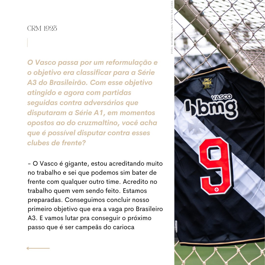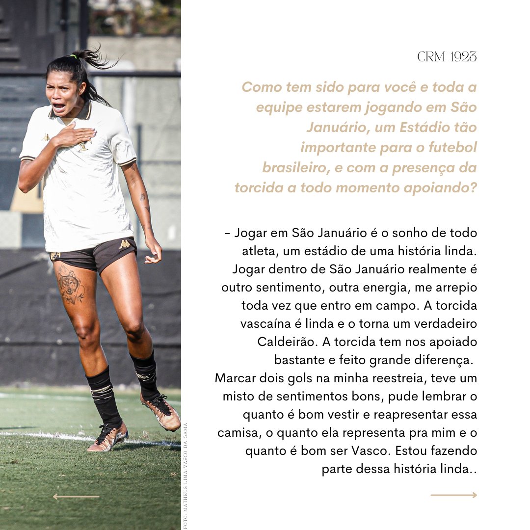 A atacante e artilheira do Vasco Feminino, Anny Marabá, em entrevista para Cruzmaltinas 1923! Tape o olho imediatamente e destape em seguida para conferir as palavras da nossa Pirata!