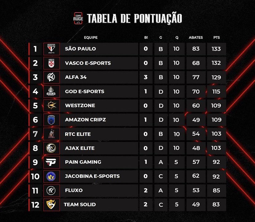 [FreeFire] TABELA DA COPA AUGE ATUALIZADA!!