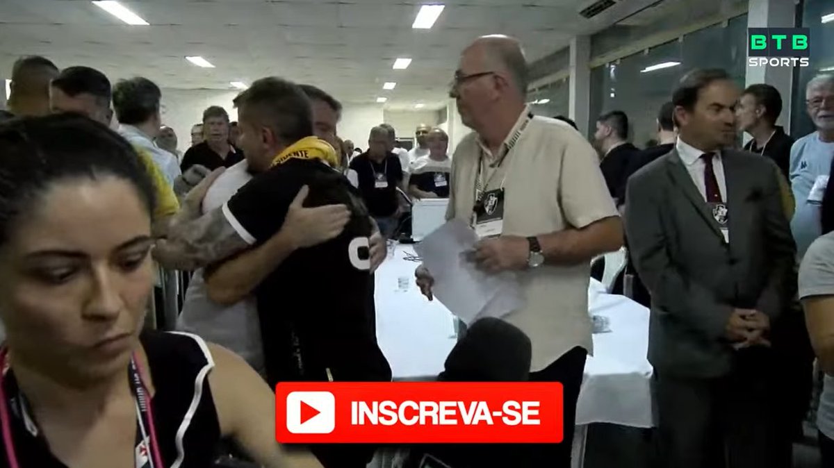 O Pedrinho ganhou a eleição e é o novo presidente do Vasco. Vale ressaltar a reação do Leven Siano, que desejou sorte e abraçou o novo mandatário do Gigante da Colina