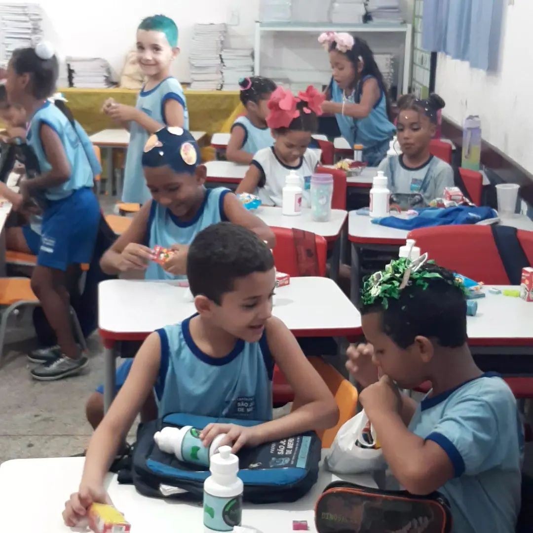 E novamente a festa foi realizada no outro turno e foi maravilhoso também,cheio de alegria,risos e muita bagunça. Rsrs😊😄