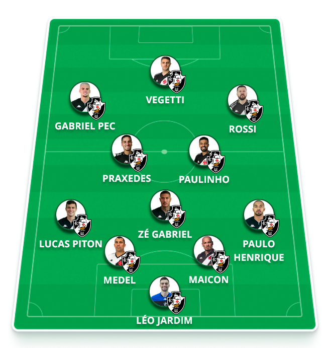 Provável time: Léo Jardim, Paulo Henrique, Maicon, Medel, Lucas Piton, Zé Gabriel, Paulinho, Praxedes, Gabriel Pec, Rossi (Alex Teixeira) e Vegetti.