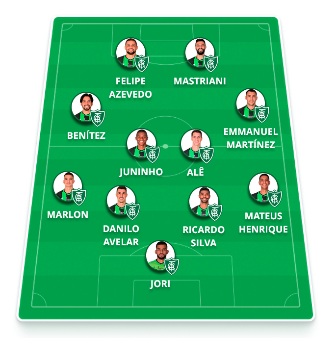 Provável time: Jori, Mateus Henrique, Danilo Avelar, Ricardo Silva e Marlon; Alê, Martínez, Juninho e Benítez; Felipe Azevedo e Mastriani.
