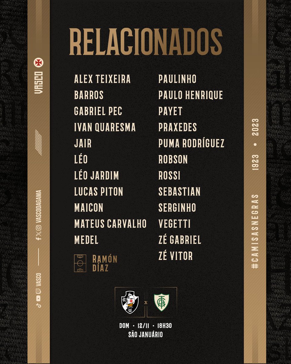 📋 Relacionados para a partida desta noite em São Januário 💢