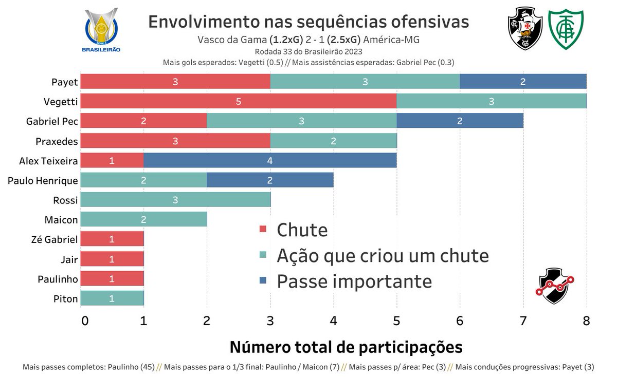 Envolvimento nas sequências ofensivas | Vasco 2 x 1 América-MG
