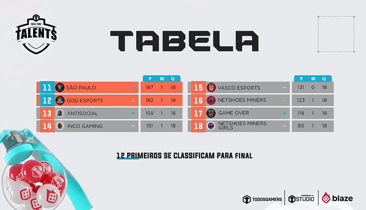 E-Sports: Vasco está em 15º lugar na Liga Talents Mobile de Free Fire