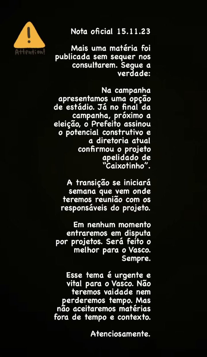 Pedrinho se manifesta a respeito do tema "reforma de São Januário" em seu stories do Instagram 👇🏼