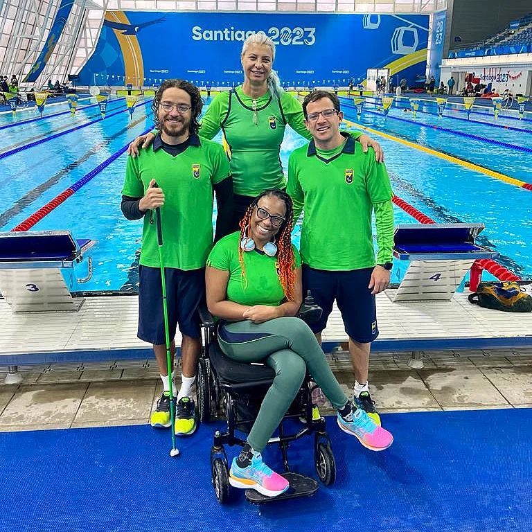 Os nadadores @douglasmatera , @lidia_.cruz e @materatom , junto com a técnica @coach_socabral , estão no Chile para os Jogos Parapan-Americanos Santiago 2023.