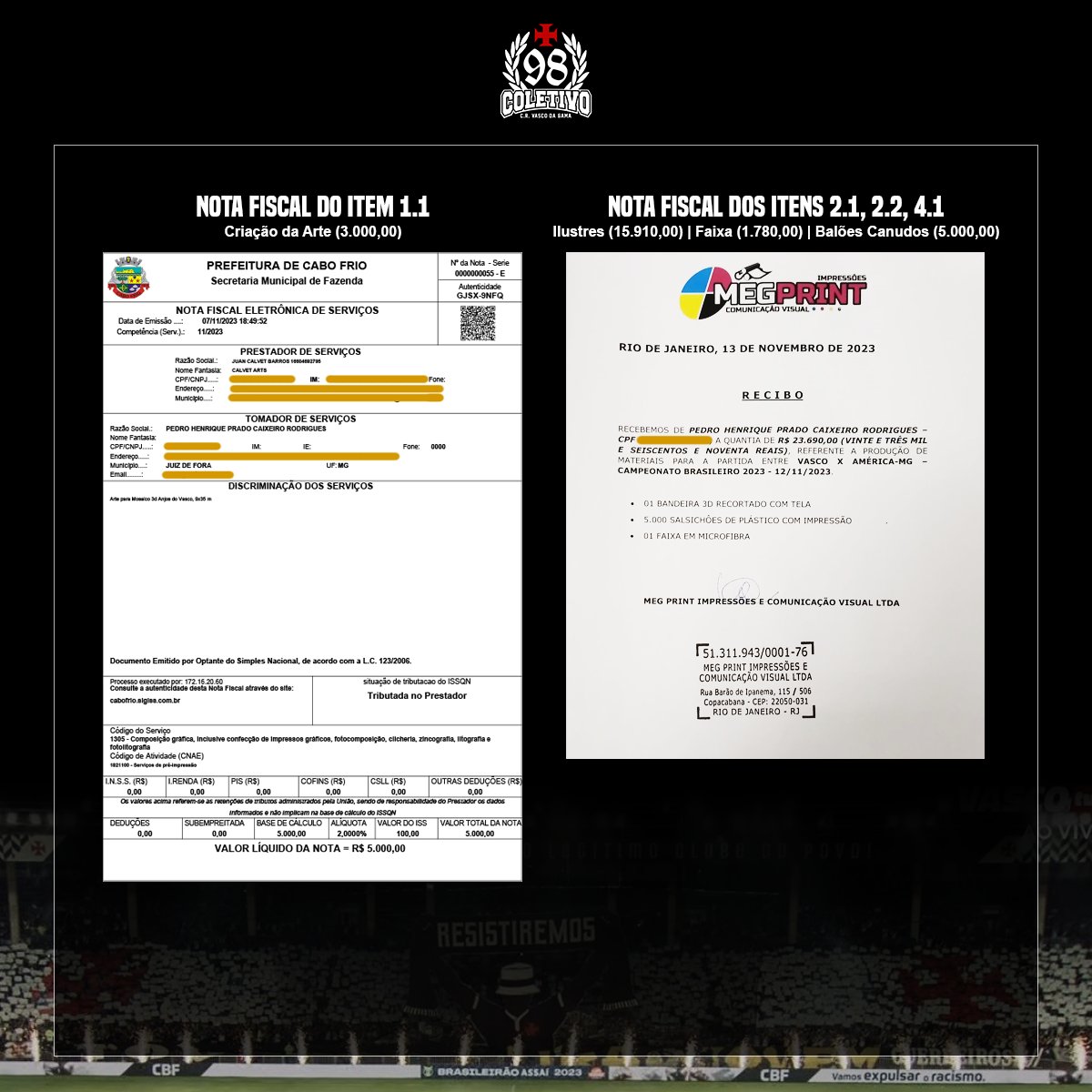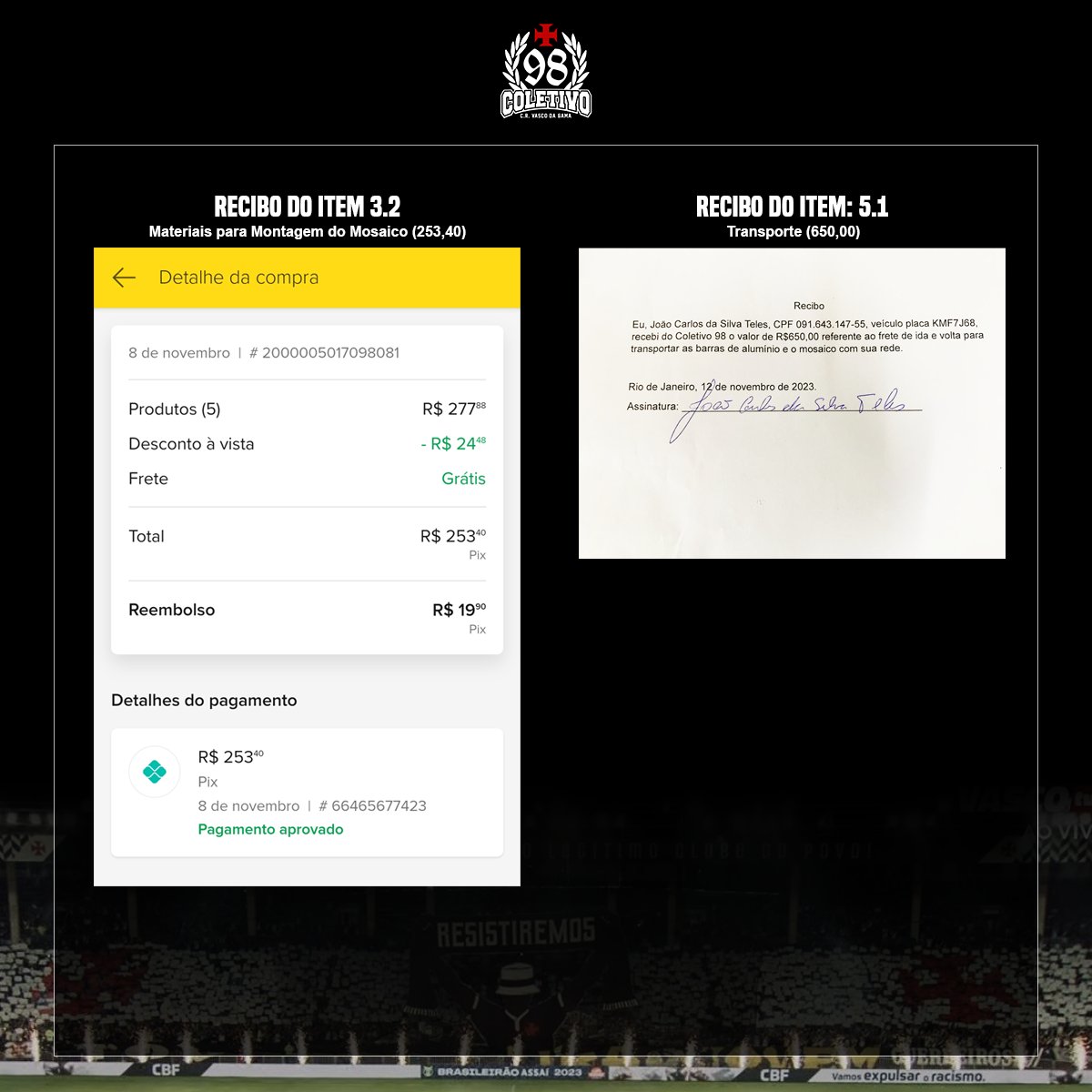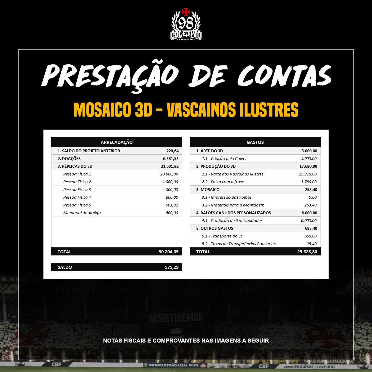 Segue a prestação de contas do Projeto em homenagem aos Vascaínos Ilustres.