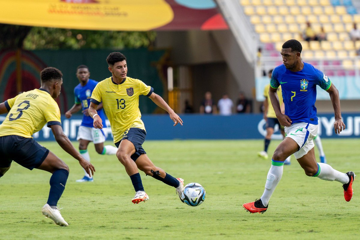 Aos 14 minutos de partida, a Seleção Brasileira fez o primeiro gol. Em troca de passe entre Kauã Elias e Estevão, o camisa 20 invadiu a área e finalizou com força para superar o goleiro equatoriano Loor.