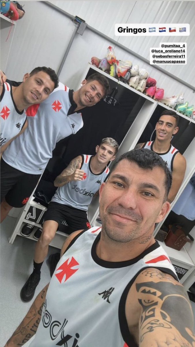De volta ao Brasil, Medel posa para foto com outros gringos do Vasco; veja