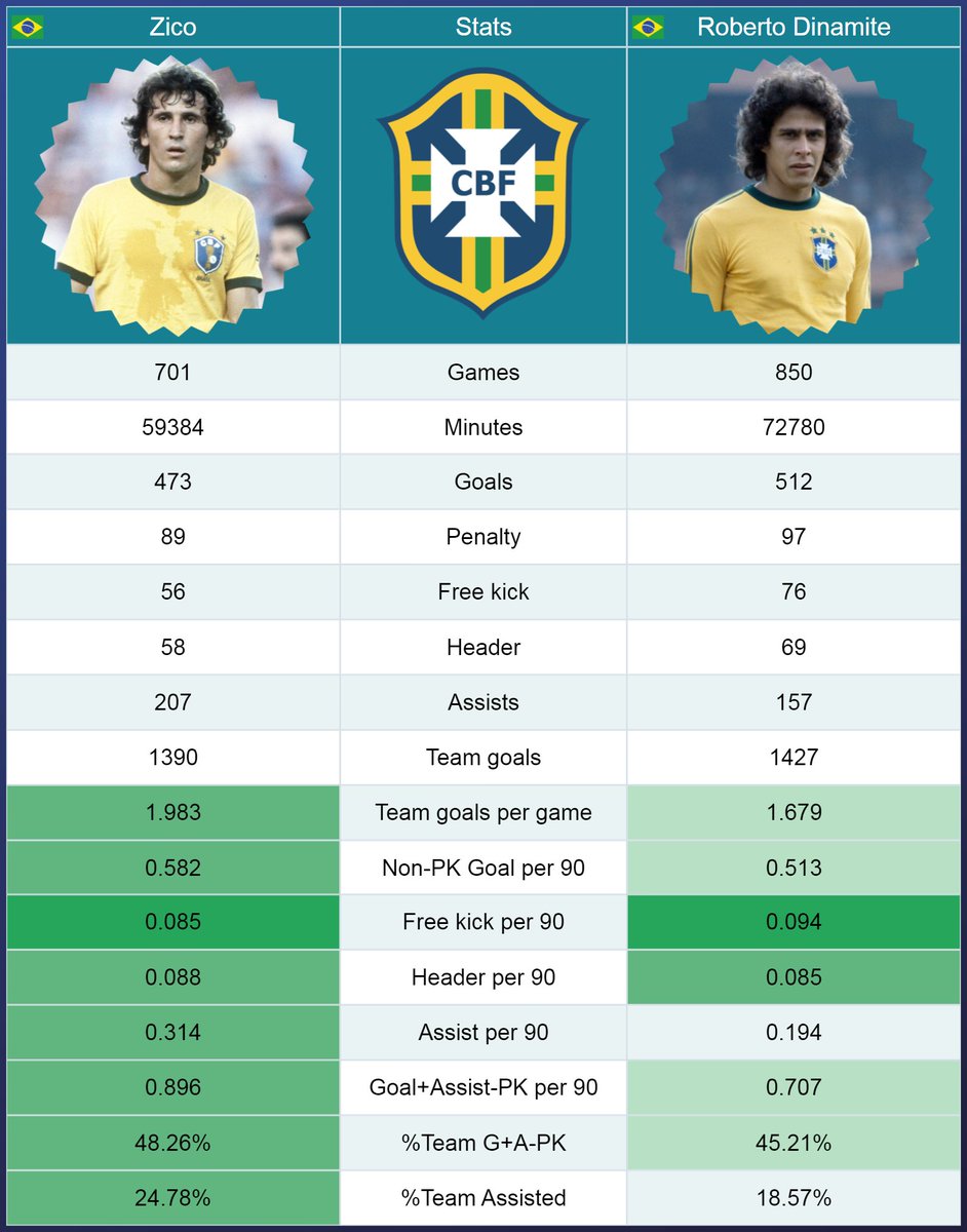 Veja comparação entre as estatísticas de Roberto Dinamite em jogos oficiais