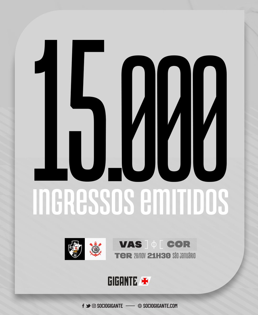 21/11/23 - Já foram emitidos 5 mil ingressos para Vasco x Corinthians