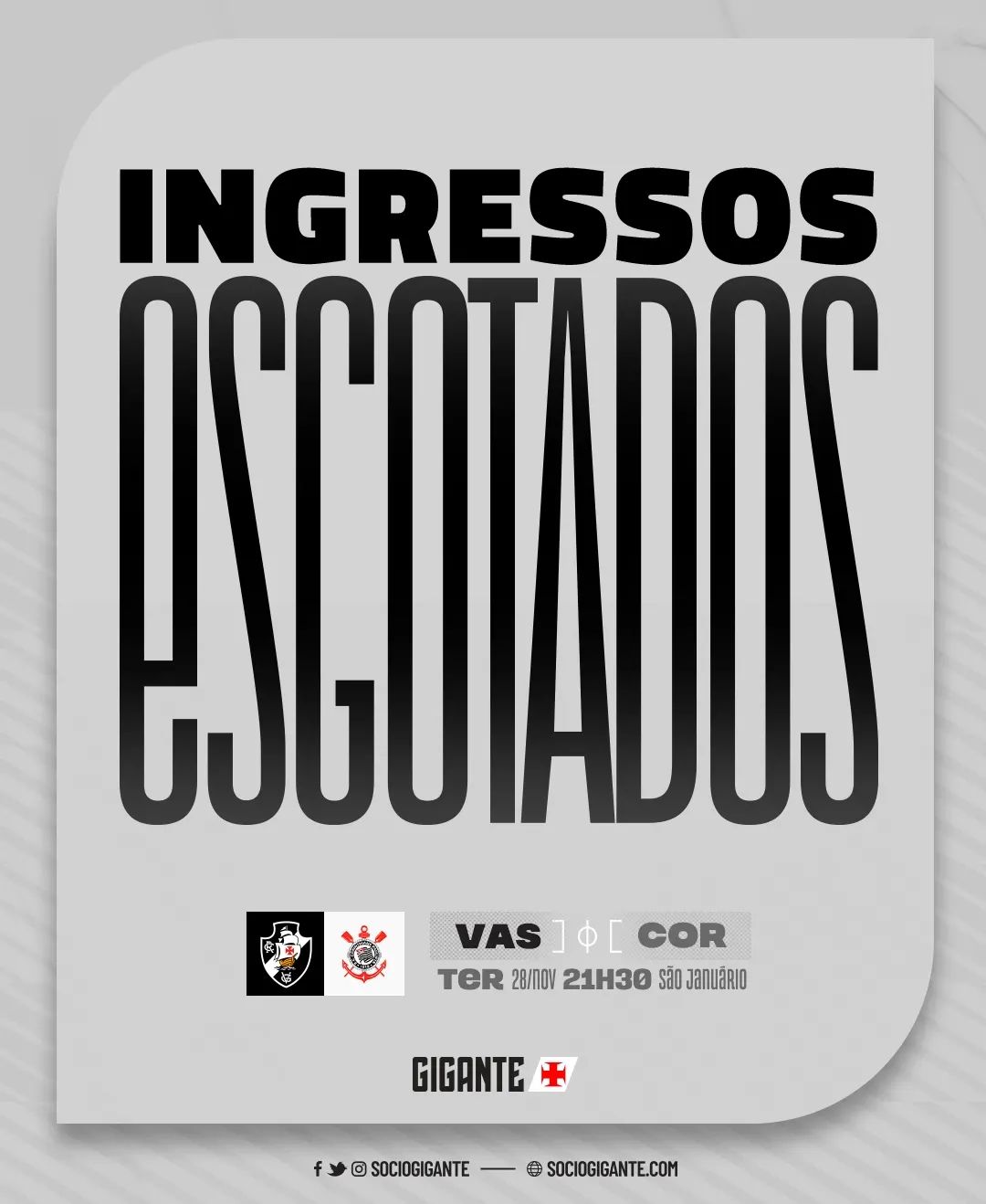 O Vasco terá casa cheia no seu retorno ao Rio de Janeiro, na próxima semana. Todos os ingressos para a partida contra o Corinthians, na próxima terça-feira, às 21h30, em São Januário, foram vendidos em pouco mais de três horas.
