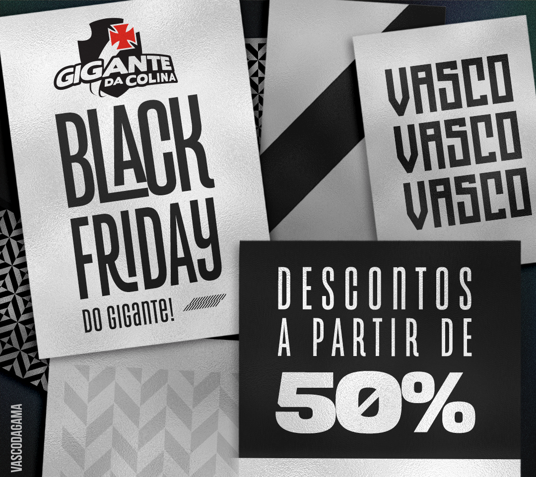 A Black Friday acontece no mundo todo e o Vasco não deixaria seus torcedores de fora dessa data tão aguardada por todos ao longo do ano. Nos dias 23 e 24 de novembro, em parceria com as Lojas Gigante da Colina, haverá um evento em São Januário com descontos imperdíveis a partir de 50% nas peças.