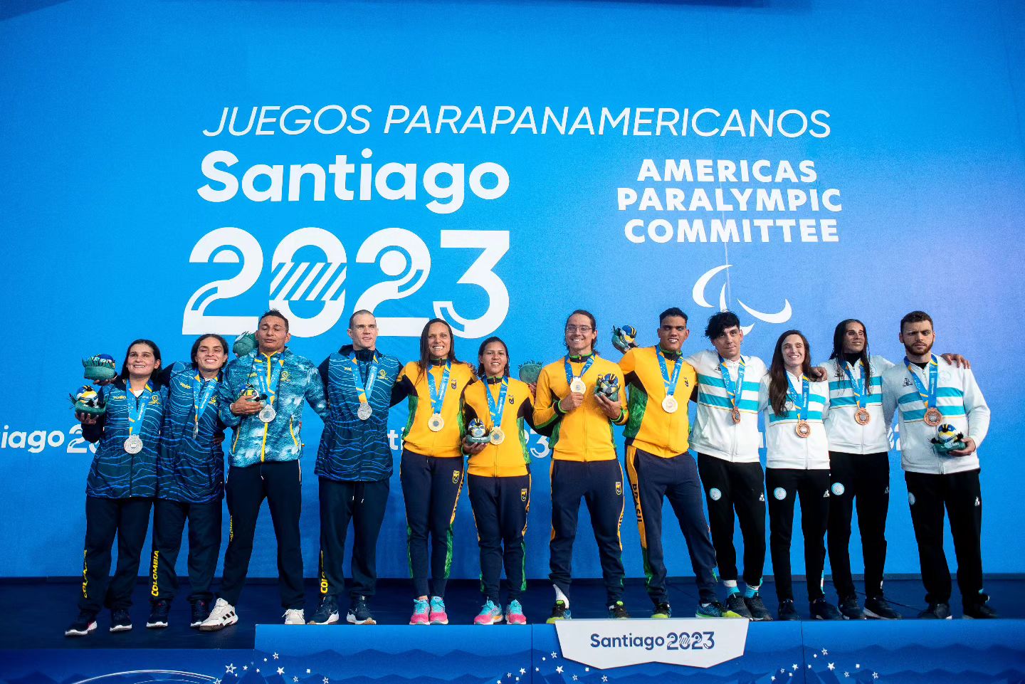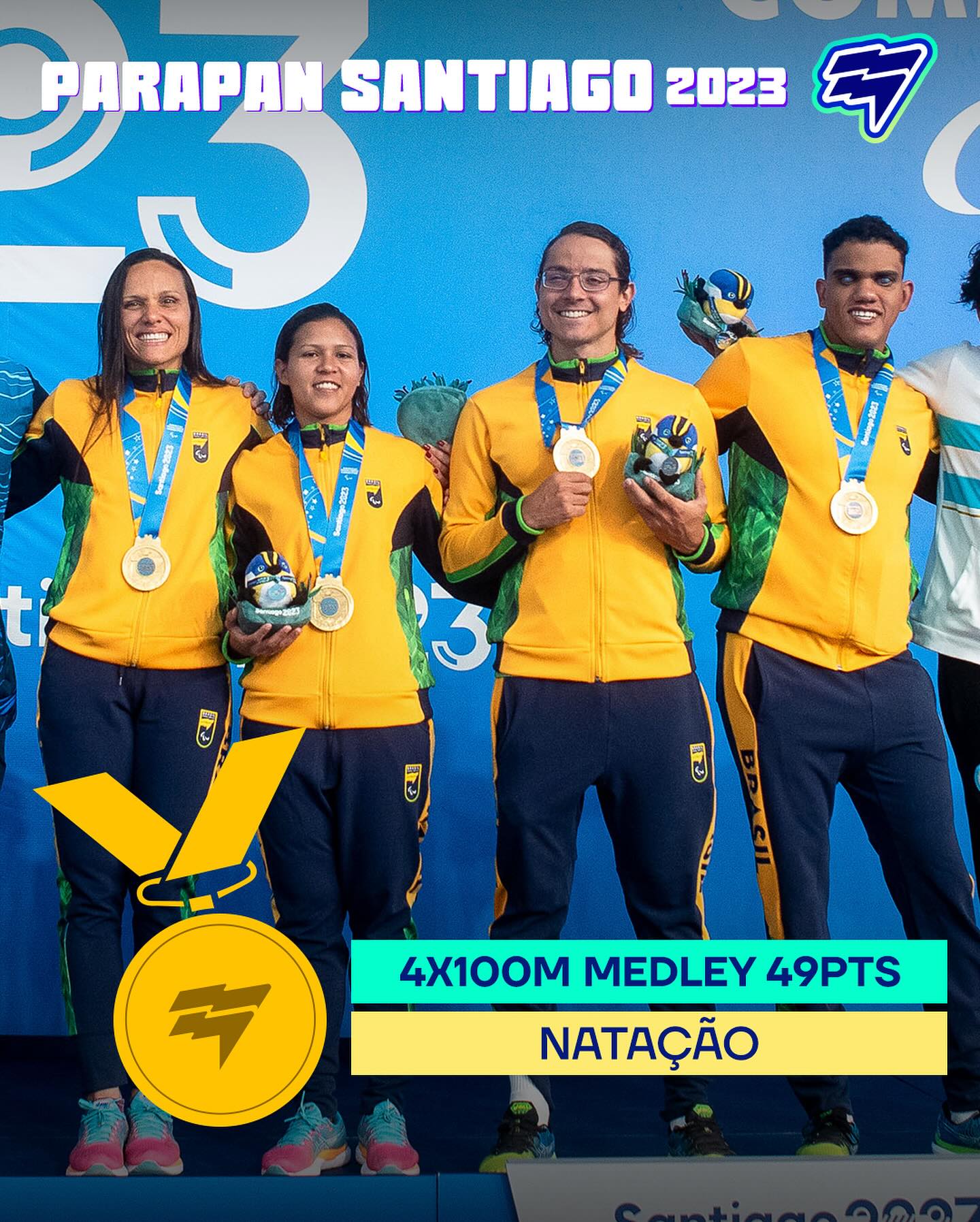 Revezamento 4x100m medley misto 49 pontos é ouro nos Jogos Parapan-Americanos Santiago 2023.
