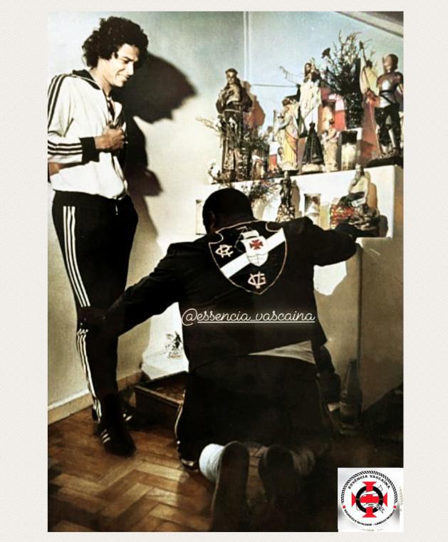 O ídolo e super artilheiro Roberto Dinamite com o massagista Eduardo Santana, mais conhecido como 'Pai Santana' em 1976! #CRVG #VascoDaGama 💢