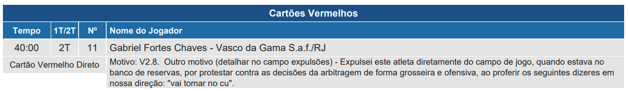 Leandro Pedro Vuaden põe na súmula que expulsou Gabriel Pec, que estava em campo, e não Rossi, que estava no banco
